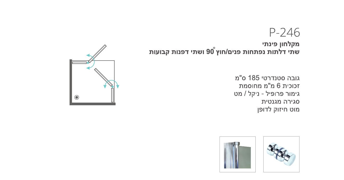 מקלחון פינתי קבוע דלת קבוע דלת לפי מידה